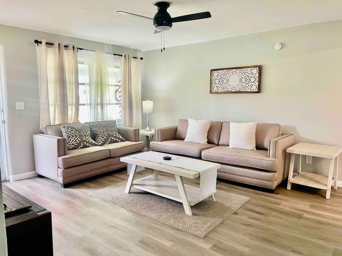 Pihenj egy Cal King vendéglakosztályban, amely ötvözi a modern luxust a klasszikus mozit idéző környezettel. Élvezd a reggeli csészédet a természetre néző kilátással. Merülj el egy régi, gyógyfürdőszerű fürdőben, túl nagy káddal és zuhanyzóval. Plüss törülközők, feltöltött kávézó, intelligens TV, nagy sebességű WIFI, légkondicionáló és teakonyha. Privát; külső bejárat és nincsenek közös falak a főépülettel. Csendes környék a VB Country Club mellett. Parkolj előre, nincs lépcső. 1,5 mérföldre a vásárlástól, a Barber Bridge-től és a Royal Palm Pt-től.