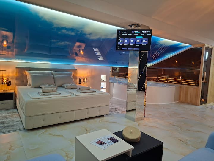 Önálló bejutás Nyitott elrendezés Pezsgőfürdő és szauna