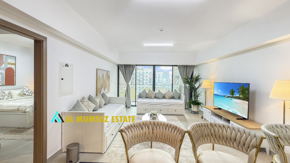 Üdvözlünk a Bright Oasisban, a Yas-szigeten található elegáns stúdióban, amely modern kényelmet és eleganciát kínál. Élvezd a napfényes helyet lenyűgöző kilátással, nagy sebességű Wi-Fi-vel, Smart TV-vel és teljesen felszerelt konyhával. Pihenj a saját erkélyen, vagy fedezd fel az olyan közeli látványosságokat, mint a Yas Marina, a Ferrari World és a Yas Mall. A közös medencéhez, fitneszközponthoz és privát parkoláshoz való hozzáférés tökéletes városi menedéket nyújt a nyugodt és kényelmes tartózkodáshoz.