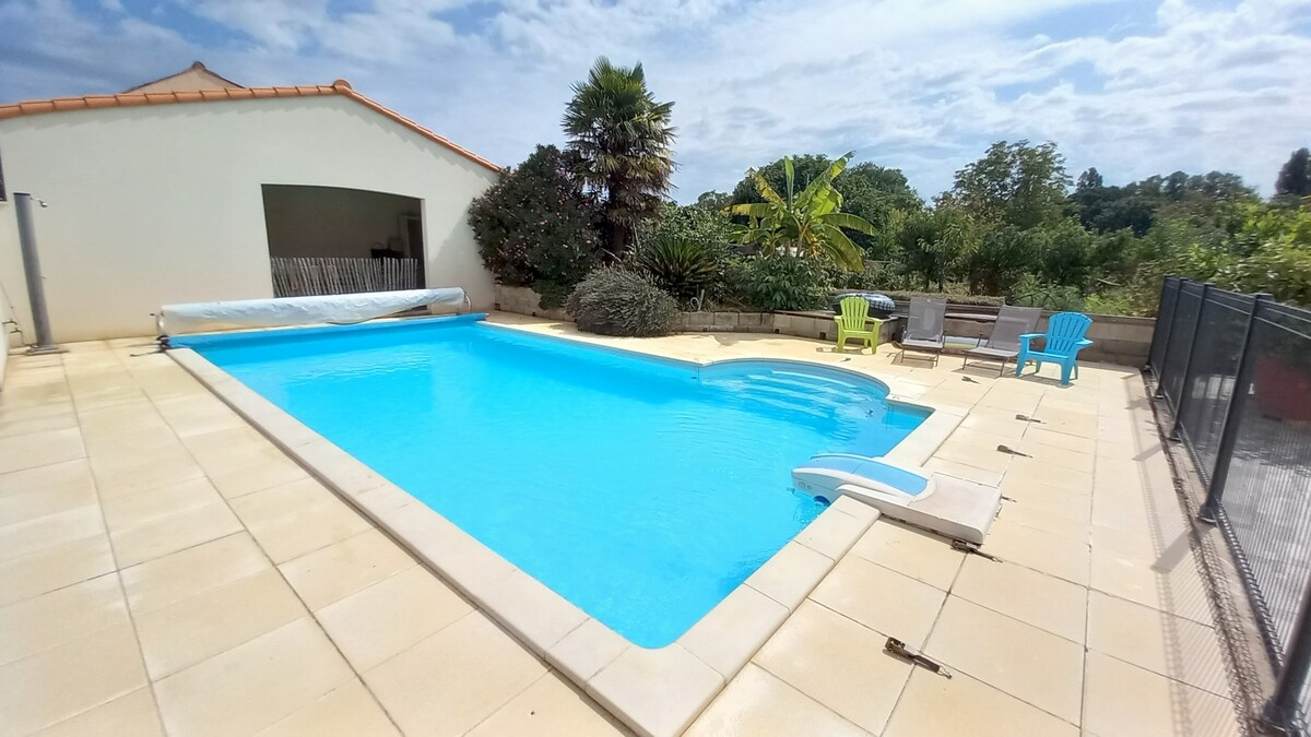 A Royan-Saintes-Rochefort háromszög szívében fedezz fel egy békés vidéki menedéket, mindössze 25 km-re a strandoktól. Ez a tágas, 110 m²-es ház egy 2 hektáros, 19. századi borászaton található. Élvezd a privát teraszodat és a zárt kertedet. Április közepétől október elejéig merülj el a 27 °C-os fűtött sós vízből álló medencében, amelyet csak két másik vendéggel osztasz meg. Igazi paradicsom a természet és a nyugalom szerelmeseinek.