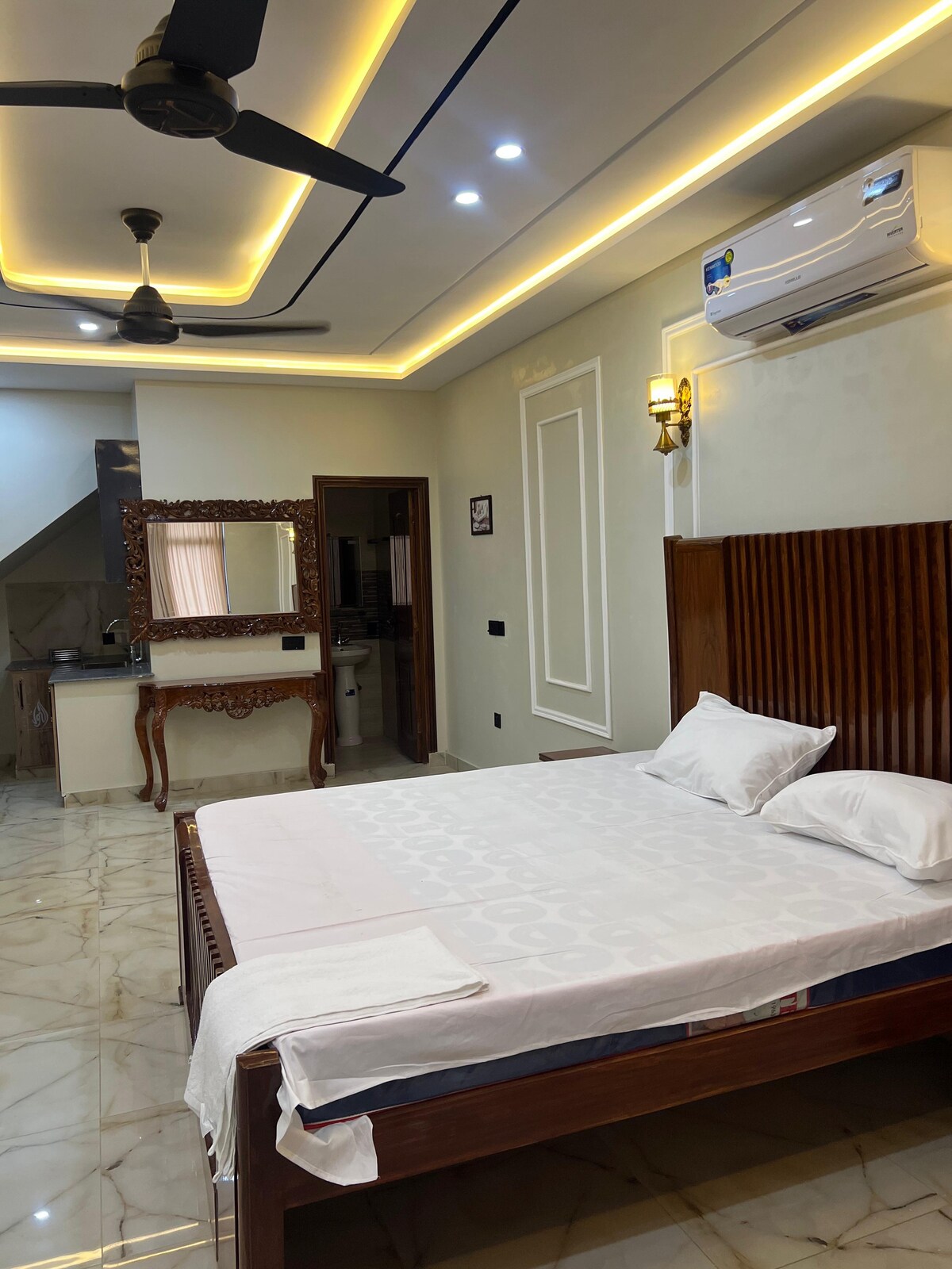 Lebegő ágy, csillagfényes mennyezet és lift — Multan legesztétikusabb egyágyas szálláshelye. Escape Aura – Luxury Stay in Buch Villas, Multan Ismerd meg Multan első esztétikus lakását csillagfényes mennyezettel, lebegő ággyal és elegáns, sötétfényes témával. Élvezd a teljes privát szférát az önálló bejutással és távozással. A Buch Villas negyedben található szálláshely mindössze pár lépésre található az Imtiaz Mega Mart, a Universal Cinema és a Buch International Hospital épületétől. Csak család és igazolt vendégek. Nem házas pároknak nem ajánlott / bulik nem engedélyezettek.