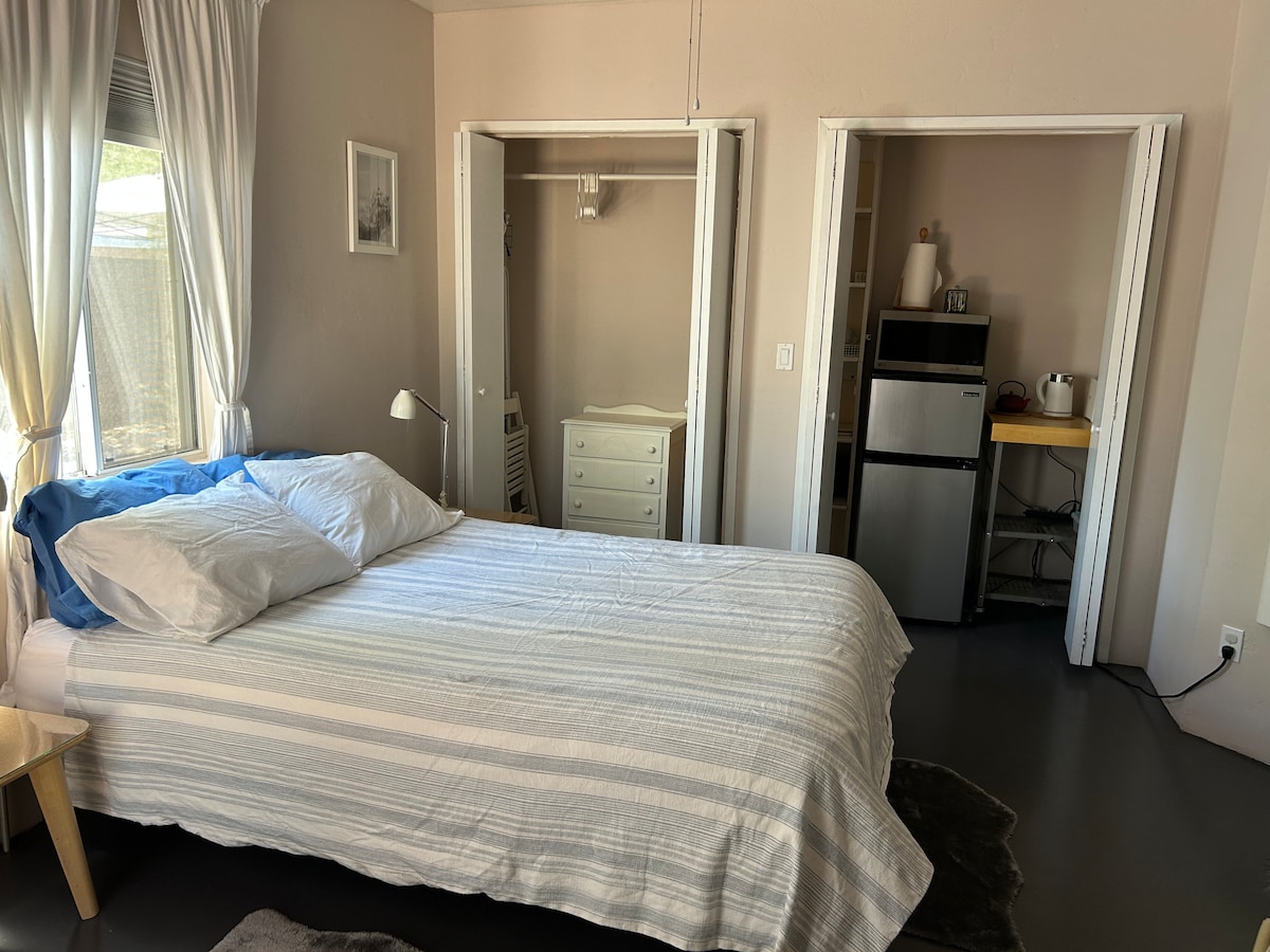 Privát szoba a belvárosban. Nincsenek más vendégek. Élvezd a saját bejáratodat, teraszodat, kertedet és fürdőszobádat. Biztosítsd az utcai parkolást. Központi légkondicionáló/fűtés, queen méretű ágy, organikus és természetes ágynemű, testápolási és tisztítószerek. Nagy mini hűtőszekrény/fagyasztó, mikrohullámú sütő, vízforraló kávéhoz és teához. Nagy szekrény, Wi-Fi, okostévé, íróasztal és gázgrill. 5 percre a Loop-tól. Sétáljon a Tucson Botanical Gardens-ig. 15 perc a belvárosig, TMC, UA, Banner. 25 perc a nemzeti parkokig, a Mt Lemmonig és a repülőtérig.