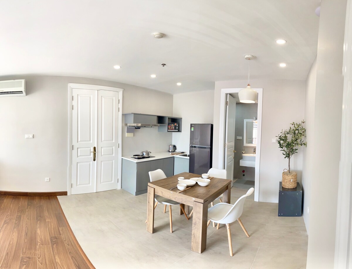 Csodálatos 1 hálószobás lakásunk a város szívében található! A tágas tér 3,8 méter magas mennyezettel, két nagy erkéllyel és sok napsütéssel rendelkezik. Felszereltség: -Királyágy és nagy étkezőasztal - Lenyűgöző gyors internet (200+Mbps) - Teljesen felszerelt konyha - Korlátlan ivóvíz -Smart TV + Netflix -Bluetooth hangszóró -Rain zuhanyzó és vécé bidé - Ingyenes kávézó Egy rövid sétára vagyunk a Nguyen Hue-tól, így közel leszel Saigon legjobb éttermeihez, kávézóihoz, vásárlásához és éjszakai életéhez!