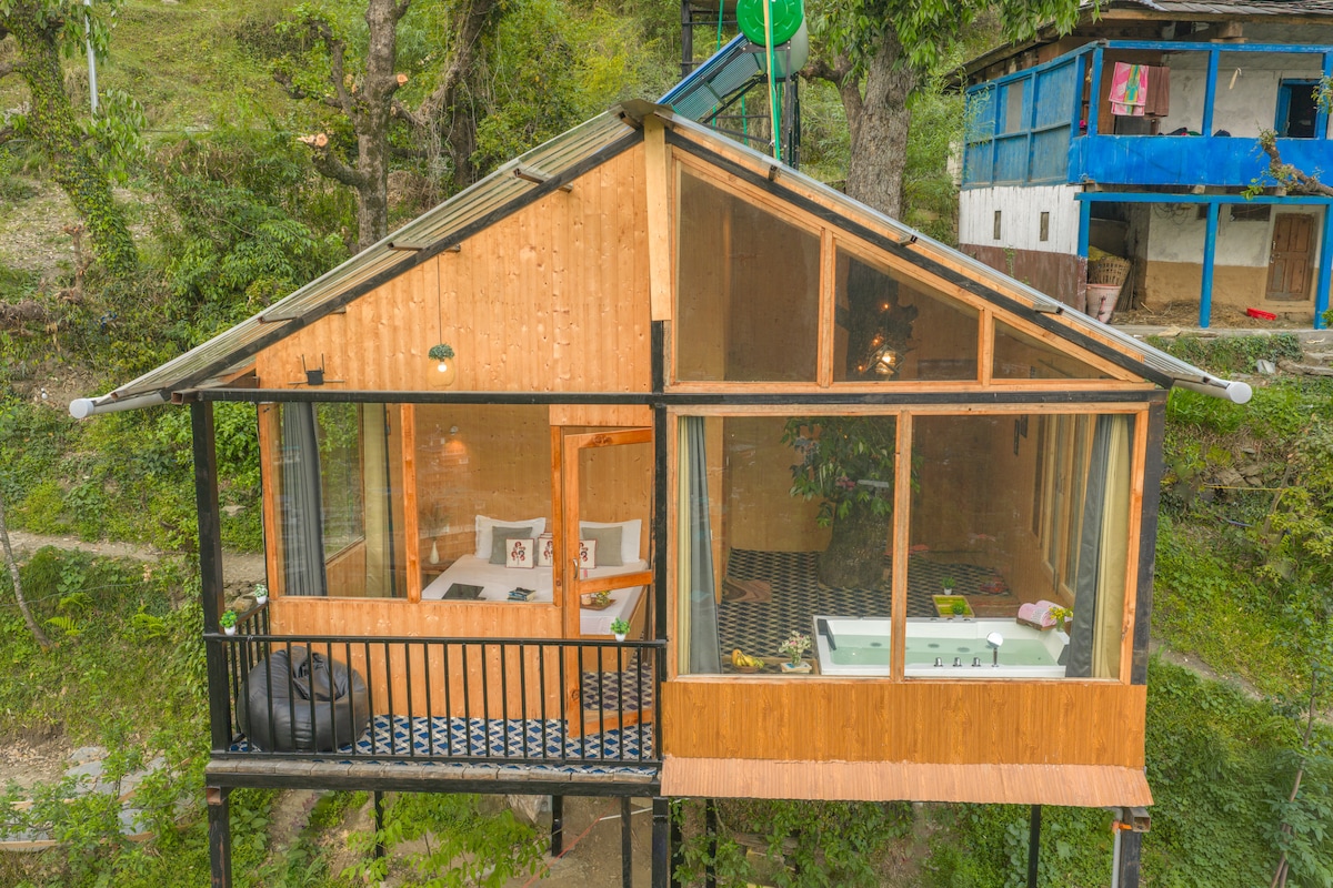 Jacuzzi Glasshouse in Jibhi (The Hot Tub Hideaway)