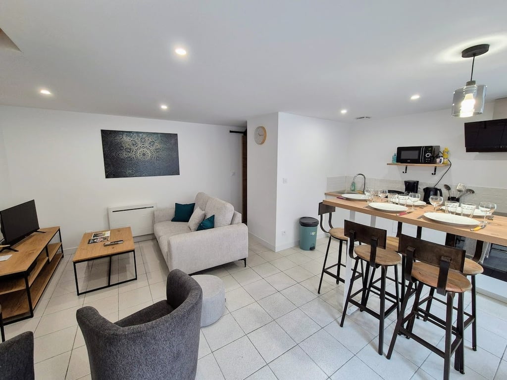 Érezd jól magad Puy du Fou-ban ebben az új, 42 m² -es stúdióban (beleértve a 10 m² -es félemeletet). A békés környéken mindössze 2 perc alatt megtalálod az összes szükséges üzletet, beleértve az Intermarchét, a pékségeket, az éttermeket, a bankokat és a kézműves üzleteket. Ágyneműt és fürdőszobai törülközőket biztosítunk a kényelmed érdekében, és az érkezésed megkönnyítése érdekében a kulcs a stúdió bejáratánál található zárható dobozban lesz elérhető, amely teljes függetlenséget biztosít.