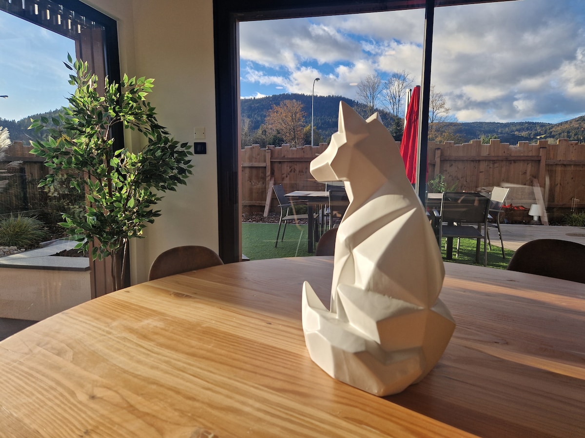 Egy erdő szélén lévő lakóövezetben, 32 m2-es faház típusú ház 2 FELNŐTT számára, felszerelt konyhával (tűzhely, mikrohullámú sütő, hűtőszekrény/fagyasztó, Senseo kávéfőző, elektromos vízforraló stb.) Fürdőszoba, nappali kanapéággyal, TV, Wi-Fi. Hálószoba 140 x 190-es ággyal és szekrénnyel, terasszal. Élvezni fogod a hegyet és a túraútvonalakat gyalog vagy hegyi kerékpárral. Saint-Amé Remiremont és Gérardmer között található