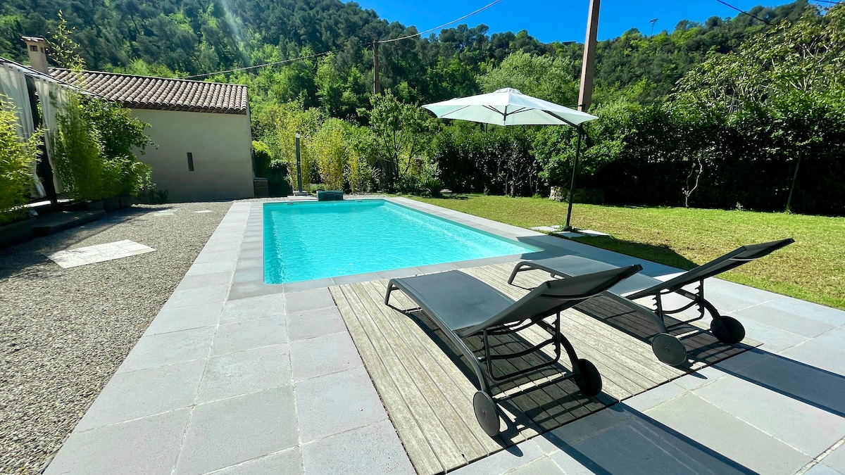 Petit STUDIO très bien équipée avec entrée et parking privé dans une grande Propriété avec piscine et jacuzzi chauffés du 10 avril au 30 octobre . La piscine extérieur et jacuzzi ainsi que le jardin sont partagés mais assez grand pour profiter chacun son espace de tranquillité . Je vis dans la bastide principale . Un Havre de Paix entouré d oliviers centenaires . A 35 minutes de l aéroport de Nice et divers villages provençaux et 14km de Cannes . Tele grand écran /abonnement Netflix