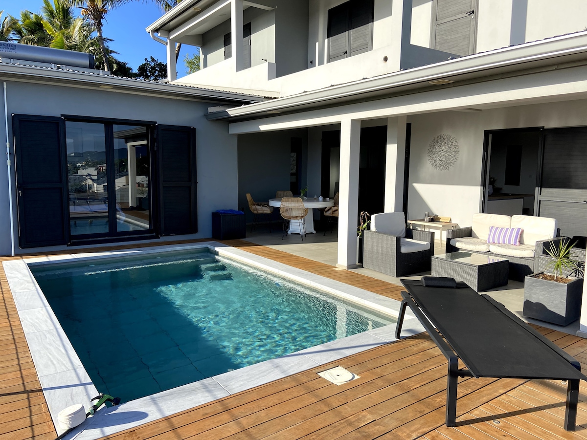 Seulement à 10 km de Saint-Louis, et à 5 min en voiture du centre des Makes où vous aurez accès à toutes les commodités. Profiter du confort moderne avec 2 cuisines : une intérieure entièrement équipée ouverte sur le séjour et un extérieur avec une plancha donnant accès à une grande terrasse avec vue montagne. La villa peut accueillir 6 voyageurs : - 1 chambre double avec salle d'eau et terrasse privée - 1 chambre double avec salle de bain privée - 1 canapé convertible dans le séjour