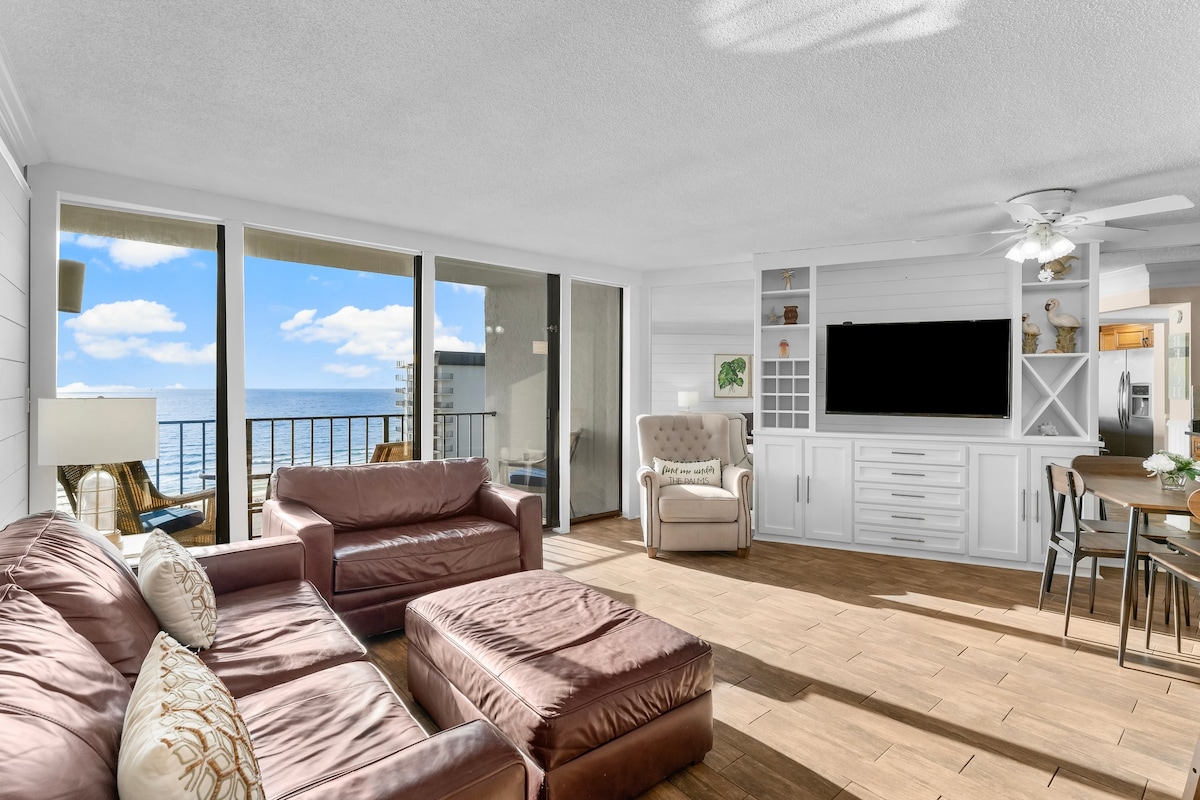 Élj luxusban az óceánparton | 4 hálószobás tengerparti lakás Ébredj a panorámás óceánra néző kilátással a saját, második emeleti fő hálószobád erkélyéről. Igyál egy kávét reggel, miközben a hullámok nyugtató hangjait hallgatod a 2 óceánra néző erkély egyikéről. Ez a tágas 4 hálószobás/3 fürdőszobás lakás nemrég lett felújítva, csúcskategóriás bevonatokkal és minden olyan kényelemmel, amit egy stresszmentes kiruccanáshoz elvár. Ez a lélegzetelállító pihenőhely, amely csak néhány lépésre található egy cukorfehér, privát strand bejáratától, a tökéletes tengerparti kiruccanás!