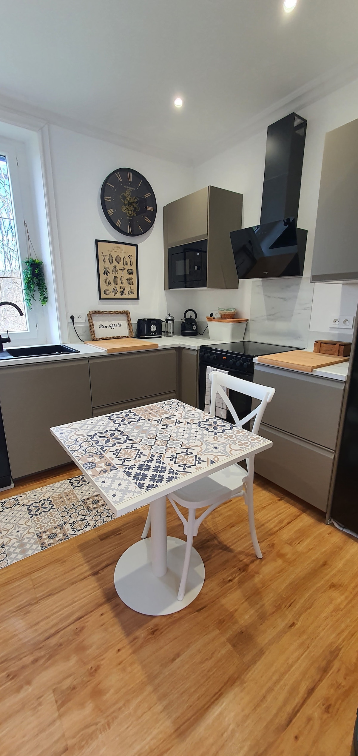 70 négyzetméteres T2 lakás egy felújított épületben Villeneuve központjában, közel minden kényelmi szolgáltatáshoz. Nagy lakosztály (160x190 ágy) rugalmas 30 m² -en, közvetlen kilátással a Lotra. Minőségi ágynemű. Teljesen felszerelt konyha (Nespresso Veruto kapszulák mellékelve), amely a nappalira nyílik. Kanapé (160x190) kabrió a nappaliban. A Lotra néző nagy teraszról kilátás nyílik a régi hídra és Villeneuve vásártermeire. Szokatlan szállás