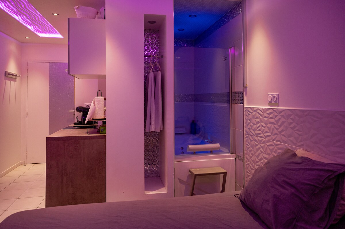 Teljesen berendezett 🏡 minden kényelemmel Bron 😎 központjában📍, 50 m-re a villamostól🚃, percek 🎓 alatt elérheted Lyon-t, a metrót🚇, az Eurexpo-t 🗺️ vagy a karokat! XXL ágy🛌! Válts kényelmi ✨ és varázslatos üzemmódba egy kis 🛀 2 személyes pezsgőfürdővel (KIS KÁD = használat után 2 óra 45 percet vesz igénybe ⏳) LED-es mennyezet✨, teljesen felújított lakás, 🛠️ nagy képernyő 📺 alkalmazásokkal. Étkezőhelyiség 🍽️ és étkezőasztal🪑. Pihenj jól, és élvezd a kapcsolódó pezsgőfürdőt📱. Hamarosan 👋 találkozunk, köszönöm 🙏