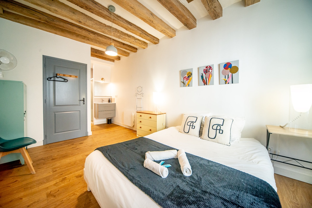 A ház a Blanqui kerületben található, 5 perces sétára a katedrálistól, 15 percre a vasútállomástól és 5 percre a Tours center kijáratától. A ház legnagyobb szobája saját fürdőszobával rendelkezik. A második hálószoba a leszálláskor néz rá. A legfelső emeleten, a padlás alatt található egy hálószoba egyszemélyes ággyal. A földszinten közös fürdőszoba is található.