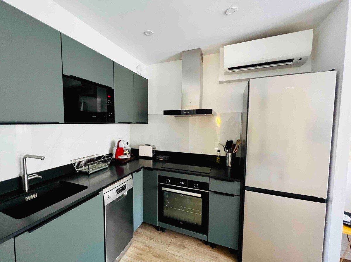 Venez découvrir notre location dans une petite résidence située à 20 mètres de la plage. Appartement T2 entièrement refait à neuf de 42 m2 situé au 2ème étage avec balcon et vue mer. Composé d’une cuisine ouverte sur séjour avec canapé convertible pour couchage quotidien en 160x200. D’une grande chambre avec couchage en 160X200, bureau pour le télétravail, dressing. SDB avec grande douche, WC séparé. TV, Internet fibre, Climatisations, 1 place de parking dans la résidence. Proche tous commerces