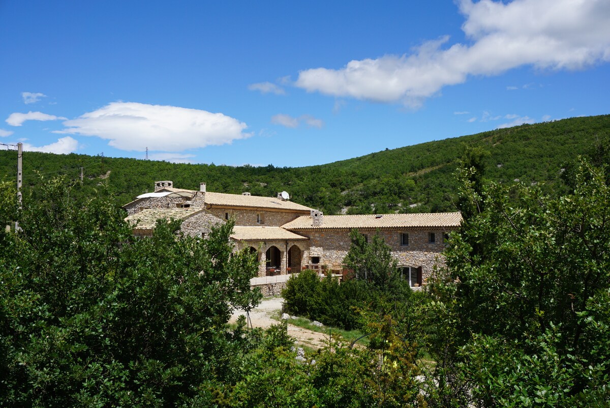 Szép Oasis Lou Garoun ház, a Mont Ventoux lábánál, bájos és hangulatos. Egy kis paradicsom. Soleil. Természet. 2 hálószoba és nagy nappali/ konyha üveg fa tűzhellyel, lépcsőmentes terasz, gyönyörű kert. Függőágyak, napozóágyak. Százéves fák. Nagyon csendes, madárdal és cigányok. Gyönyörű panoráma Montbrun-les-Bain falura, középkori örökség: 1,5 km. Minden kényelmi szolgáltatás. 10 percre vízesések és Toulourenc kristálytiszta folyói, túrázás, hegymászás...