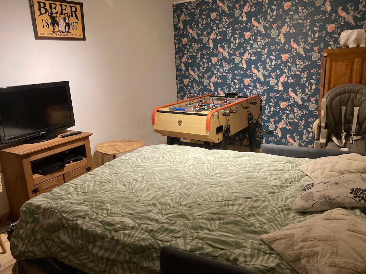 1 óra 30 percre Párizstól, egy bájos ház egy tipikus faluban, teljesen privát kertben, pezsgőfürdővel, pingpongasztallal, trambulinnal és medencével. Hangulatos ház, mert jól szigetelt és jól fűtött, nagy, nagyon barátságos nappalival. Gyönyörű, déli fekvésű terasz étkezőrésszel és napozóhellyel. Hatalmas kert a ház körül Nagy sebességű Wi-Fi és elektromos autó töltése kérésre. Az úszómedence 04.30-tól 09.30-ig tart nyitva. Háziállatok is szállhatnak meg, de nem ajánlott a szabadon szaladó állatoknak