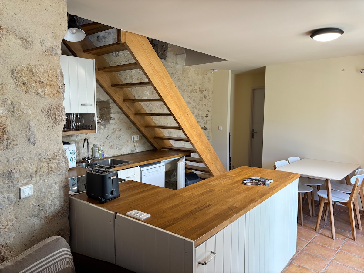 Charmant appartement de 75m² en plein cœur de Goudargues, au-dessus d’anciennes cuves à vin. Pour 5 personnes, rénové avec goût : 2 chambres, mezzanine, cuisine équipée, salon avec Smart TV et fibre. Salle de bain spacieuse, cour privée avec barbecue, parking couvert. À deux pas des commerces, de la rivière et des canaux de cette « Venise gardoise ». Ambiance authentique avec cloches de l’église voisine.