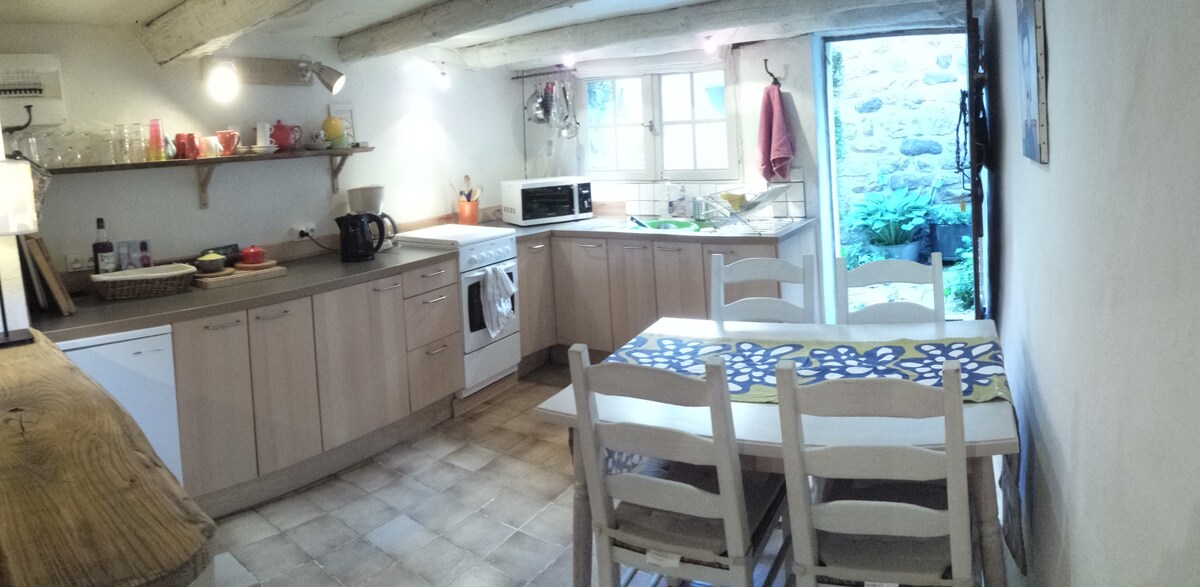 Az Ardèche Verte területén található „La Boveda” házunk 4* besorolású, és a Monts d 'Ardèche regionális természeti parkja. Elszigetelt és csendes, a „Domaine de Fontreal” (egykori erődített ház 19 hektáron) belül, 800 m magasságban. A túraútvonal szélén található, ideális a régi kövek, a nyugalom, a természet és a séták szerelmeseinek. 16x6-os úszómedence júniustól szeptember elejéig. Ágy az érkezésedhez. Vécé és házi ágynemű biztosított. Wifi, parkolás, kerékpár/motorkerékpár-tároló.