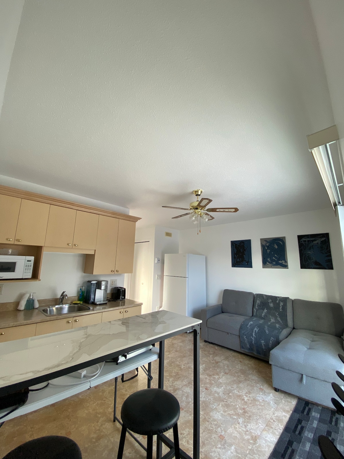 A 2020-ban teljesen felújított lakás a következőket kínálja: privát szoba kilátással a Chaudière-folyóra, egy teljesen felszerelt konyha, egy étkező magas asztallal, egy íróasztal, egy zuhanyzó és egy kényelmes ülősarok. Közvetlenül az emeleten juthatsz be egy közös és ingyenes mosókonyhába. Több étteremtől és üzlettől is sétatávolságra leszel. Emellett a kerékpárút közvetlenül a szálláshely előtt halad el.