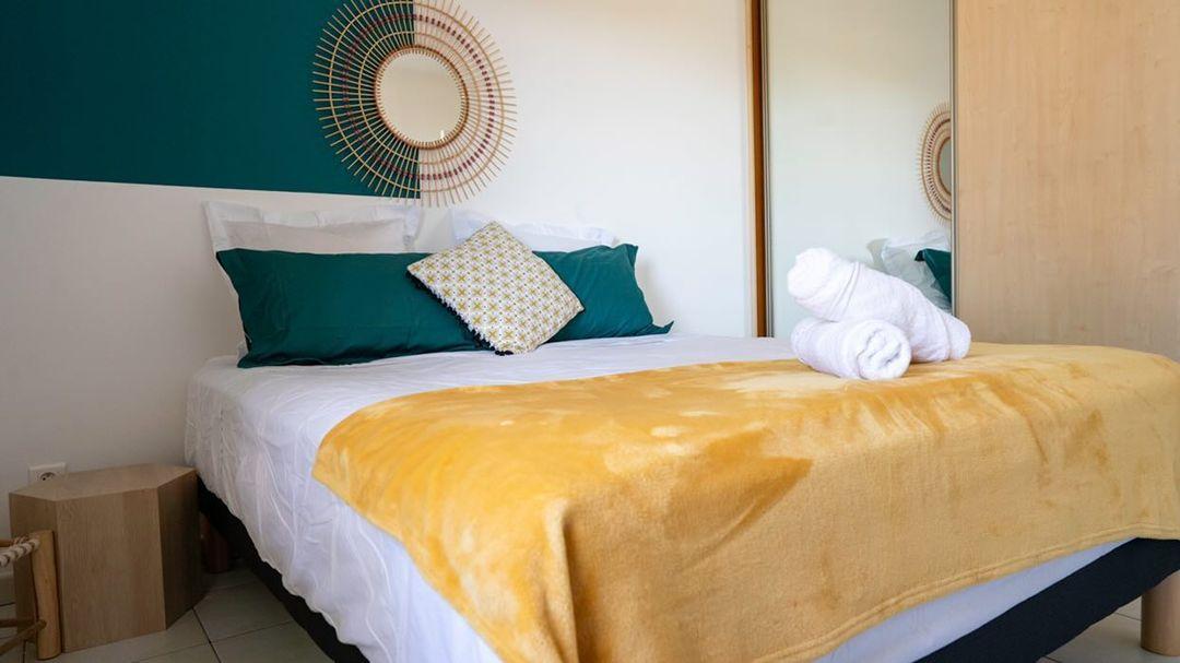 T1 bis of 48m2 on ground floor with direct access to the safe and supervised beach of Boucan Canot, renovated with kitchen, washing machine, Italian shower, air conditioning, wifi, TV, parking, corner double room partially separated from the living room, calm. The rental of the apartment is declared according to the rules, classed 2 stars, a tourist tax of 0,90 euros/adult/day will be requested the day of your arrival and paid by the owner to the community, as specified in the law.