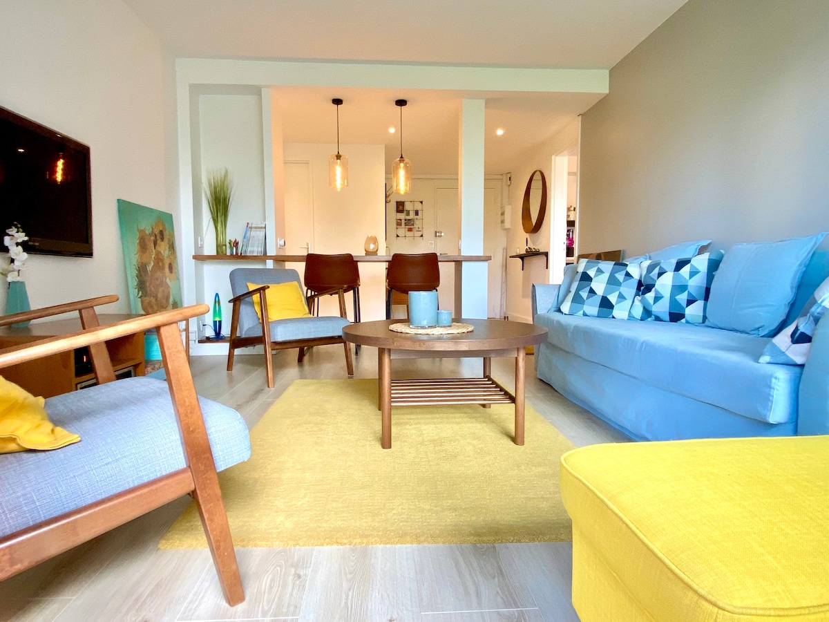 Appartement tout confort et tout équipé, idéalement situé à proximité de Rennes et de Cesson-Sévigné pour un déplacement professionnel ou une visite de la capitale bretonne. Venez découvrir la côte bretonne ou prenez l’autoroute A84 qui vous conduira jusqu’à la mer : direction Avranches, Jullouville, ou le Mont Saint Michel. Accès facile en voiture avec place de parking réservée ou en métro+bus depuis la station Cesson-Viasilva. Wifi fibre, idéal pour télé-travailler.