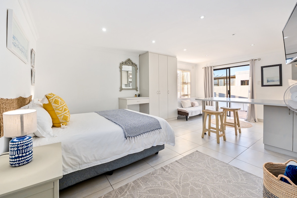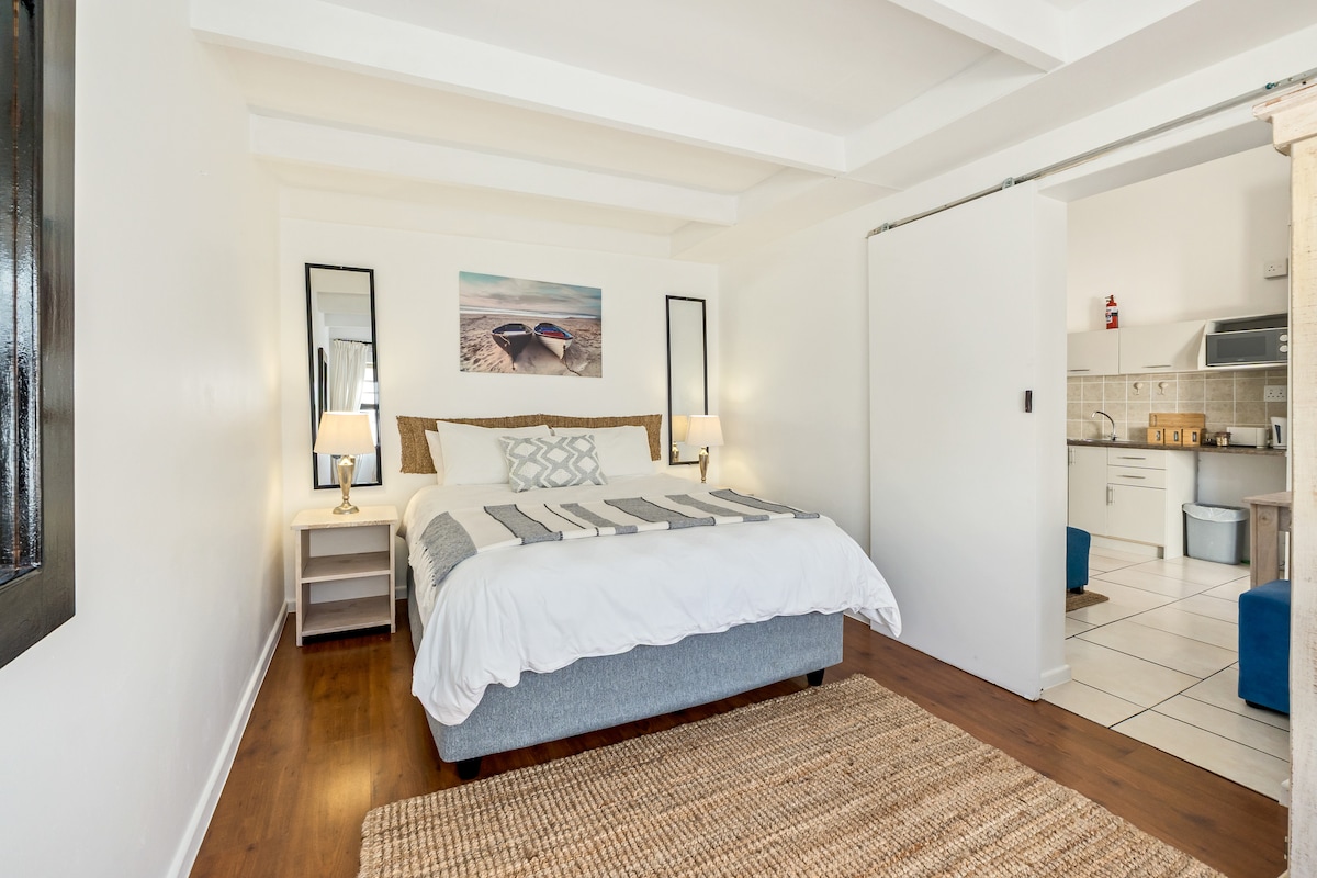 Ez a privát kerti stúdió kényelmes, önellátó szállást kínál, rövid sétára a strandtól. Az egységben king méretű ágy (kérésre két egyszemélyes ággyá alakítható), teljesen felszerelt konyha, fürdőszoba és étkezőasztal található. A vendégek pihenhetnek a kültéri padokon, vagy élvezhetik a medencét és a braai létesítményeket. Ingyenes privát parkoló áll rendelkezésre, és a bekerített ingatlan távoli hozzáférést biztosít a nagyobb nyugalom érdekében. A foglaláshoz legalább 48 órás előzetes értesítés szükséges.