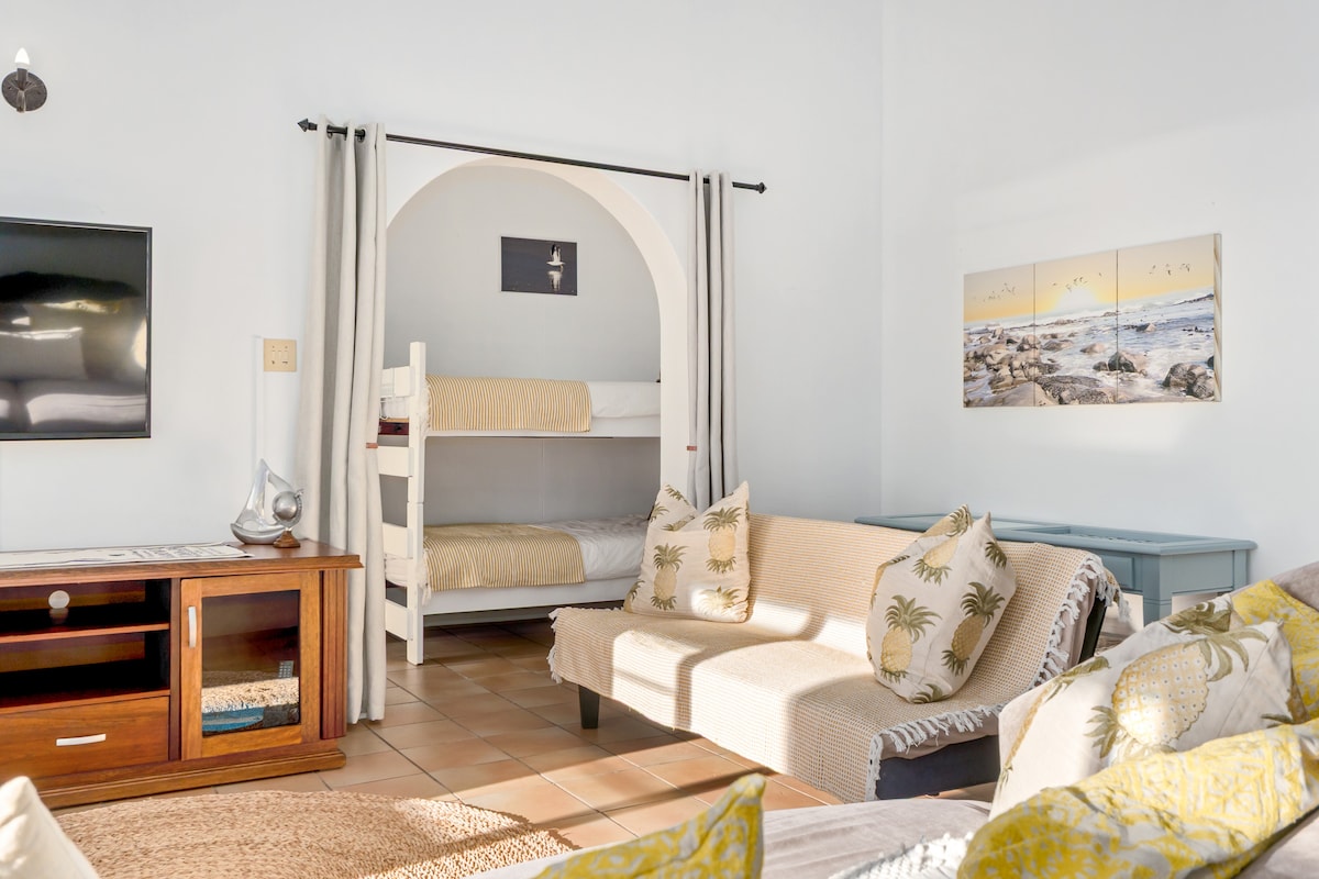 Tökéletes, privát, önellátó stúdióapartman Langebaan szívében. Tágas terasz külső braai és szoláriumi székekkel. Az ajtók teljesen kinyílnak, gyönyörű, nyitott hangulatot teremtve. Teljes NETFLIX, DSTV Compact, WIFI és Sound Bar a zene élvezetéhez. 5 perc üzletektől és éttermektől. Romantikus kiruccanást tervezel? Csillogó bort tudunk biztosítani jéggel,Ferrero Rocher csokoládékkal és romantikus zenével a lakásban, kérlek, beszélj a házigazdákkal, hogy ez egy kis felár ellenében megtörténjen.