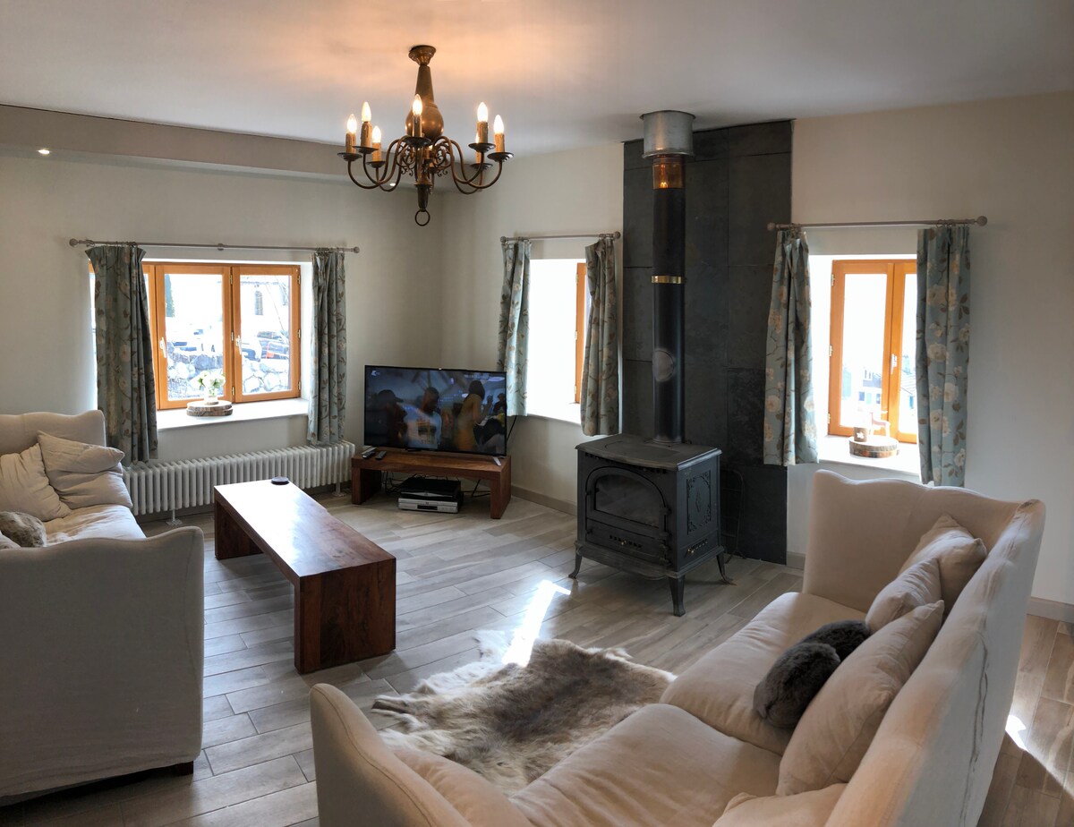Chalet Les Glycines is a 277 year old farmhouse that sits in the heart of St Jean d’Aulps, an idyllic french alpine village. It is a one minute walk to the bars and restaurants including Le National pub, the best pub in the valley. The chalet offers a large self-contained first floor apartment with a mezzanine and a large fireplace. It is ideal for 2 families or 3 couples or 8 friends. We only take week bookings starting on Saturdays. You have to climb a set of stairs to access the chalet.