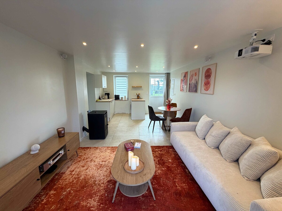 Kényeztesd magad egy Redonból Saint-La Poterie-ig tartó kiruccanással. 🏡 Ez a 4 hálószobás villa vidéki környezetben várja vendégeit, és ötvözi a kényelmet a nyugalommal. 🌿 Pihenj a szaunában, a szabadtéri pezsgőfürdőben vagy az edzőteremben, és élvezd a világos tereket. Teljesen 🧑🍳 felszerelt konyha és gondosan berendezett hálószobák. ✨ Foglald le most a kiruccanásodat az érintetlen természet szívében.