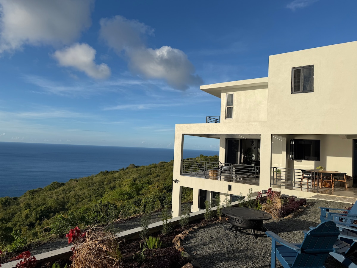 Come relax in our roomy king bed studio equipped for most discerning guests. Sleeps 4. Fully stocked kitchen, bathroom, comfy couch & fold down futon await you! Floor plan is BRIGHT & CLEAN. Designated office space w/ WIFI. COLD A/C. Serene/neutral colors; comfort is the standard. Wall-to-wall windows flood the space w/natural light, epic down island views of BVI's, St John & Lovango & so many shades of Caribbean blues. Perfect for whale watching & stargazing. Outdoor Pool, gym, decks, grill!