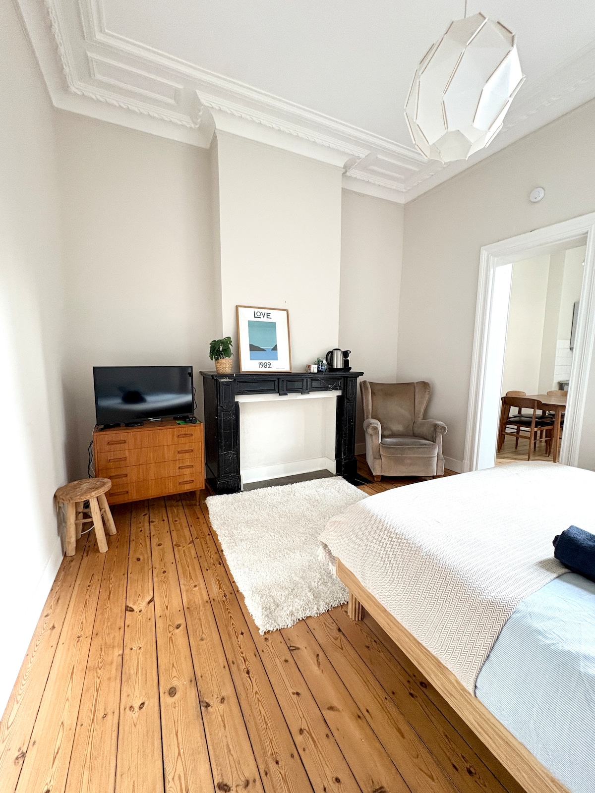 ✨Step back in time and discover the charm of a spacious townhouse built by a disciple of Victor Horta. This apartment has preserved its Art Nouveau elegance, blending historic character with modern comfort. Recognized as part of Brussels' architectural heritage, it offers a unique way to discover the city. 📍 Prime location - Metro station 600 meters away - LIDL supermarket (3 min walk) - Mini playground right in front of the house. 💕We are not an hotel. We do not offer services.