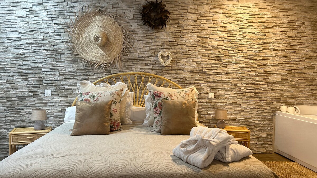 Kényeztesd magad egy felejthetetlen romantikus kiruccanással Montpellierben! Üdvözlünk a Cristalys Loveroom & Spa-ban, egy előkelő szálláshelyen, amelyet arra terveztek, hogy a párok meghitt pillanatokat élhessenek át. Infraszauna, dupla pezsgőfürdő, XXL zuhanyfej, mozi, légkondicionálás... Minden a kényelmet, a pihenést és a magánéletet ötvöző szállásra terveztem ✨ Ideális helyen, villamossal 15 percre a Place de la Comédie tértől, gyönyörű utcákkal és üzletekkel. Tökéletes egy rendkívüli élményhez!