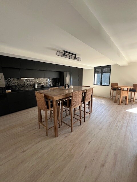 18th century apartment in area Sainte Croix & Saint Michel on quiet square. 3 minutes from riverside, five minutes from Saint Michel Tram C & D. Views of Hôtel de la Monnaie and Saint Michel tower. 70 m2 recently renovated furnished with antiques provides a modern-authentic Bordeaux experience. Kitchen fully equipped, large living and dinning room, high quality beds, spacious bathroom with bathtub and shower, free WiFi, TV, Blu-ray, and espresso machine.