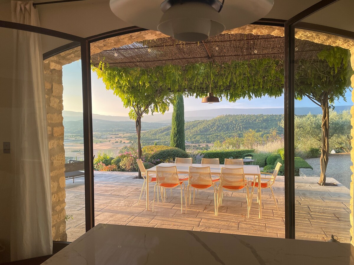 A 15. századi falu háza egy domb tetején helyezkedik el, gyönyörű kilátással. Délre néző terasz, amely a Petit Luberon hegyekre néz. A teljes felújítás biztosítja a modern nap kényelmét és a pihentető légkört, hogy élvezze egy nap után Provence-ban. Menerbes faluban (Egy év Provence-ban - Peter Mayle) többnyire helyi falusiak élnek. A gyönyörű séták és a kerékpározás népszerű időtöltések. Vannak múzeumok, művészeti galéria és néhány üzlet, amelyeket helyiek üzemeltetnek. Romlatlan és teljesen egyedi.