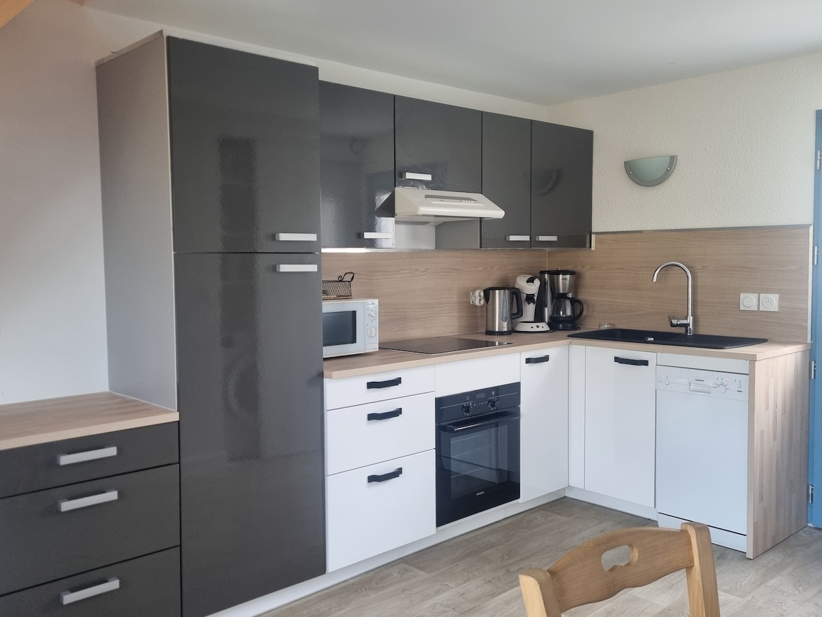 A 70 m2-es világos ház a városközpontban található, 500 méterre a tótól és 1,5 km-re a fő strandtól és a kaszinótól. Ideális 4 fős családok számára - 1 nagy hálószoba franciaággyal 160 - 1 zárt szoba, emeletes ágyak - Nappali BZ-vel, étkező - Teljesen felszerelt konyha - Külön fürdőszoba és WC TV, felszerelt konyha, mosógép, szárítógép, vasalódeszka és vasaló, porszívó, kerti kiegészítő, kiságy, babakád. Szívesen látjuk az állatokat.