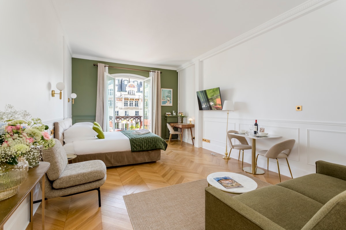 ✨ Ikonikus ♥️ Erkély, kilátás, és Párizs a lábad előtt. Ezt a meghitt párizsi búvóhelyet teljesen felújítottam és szeretettel rendeztem be – tervezőként szenvedélyem az időtlen elegancia. A Place Vendôme közelében, magas emeleten, lifttel megközelíthető helyen található, magas mennyezettel, klasszikus halszálkamintás parkettával, valamint a modern kényelem és az art deco ihletésű stílus elegáns keverékével. Lépj ki, és hagyd, hogy Párizs magával ragadjon – a legikonikusabb helyei csak egy rövid sétára vannak az ajtódtól.