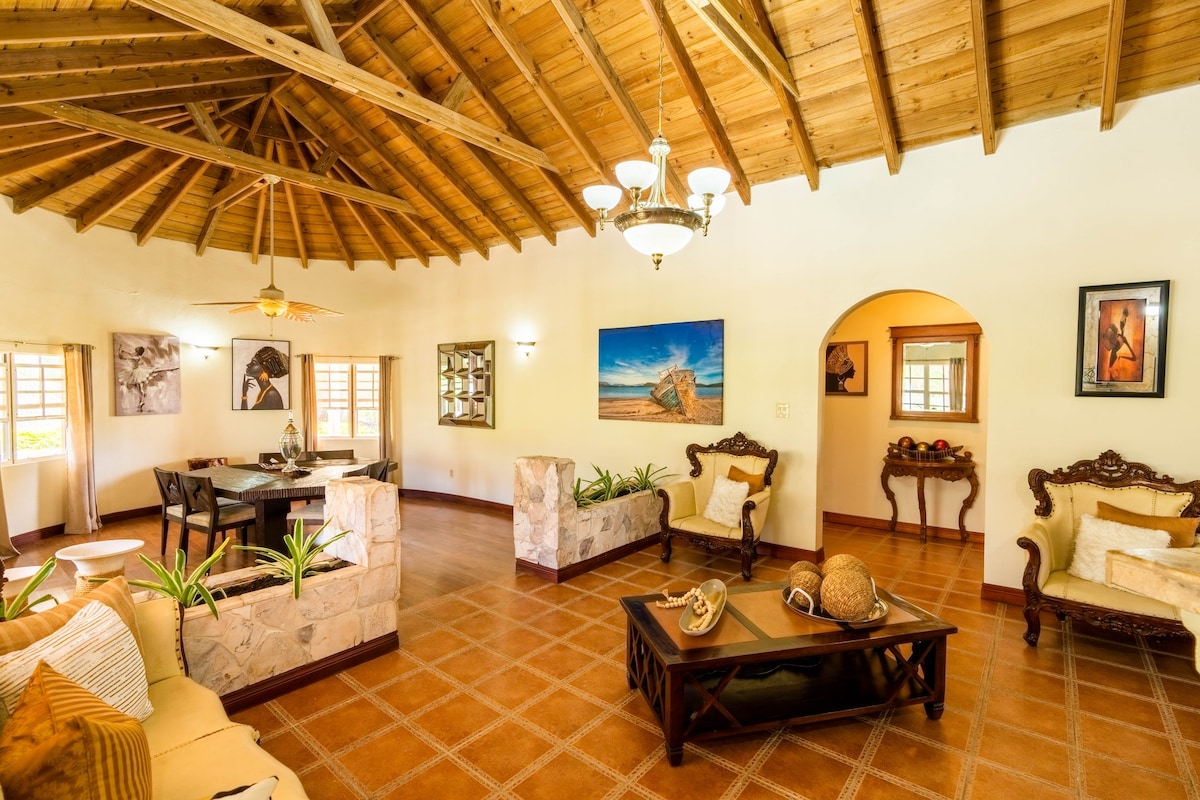 Fiatalodj meg, frissülj fel és egyszerűen pihenj bájos, 3 hálószobás / 3 fürdőszobás régi szentélyünkben, amelyet ügyesen terveztek rusztikus és lenyűgöző dekorációval. Ez a meghitt tér teljesen felszerelt, és minden kényelmi szolgáltatással rendelkezik, amely a teljes kikapcsolódáshoz és a rendkívüli kényelemhez szükséges. A tornácokról csodálatos kilátás nyílik a hegyre és a Karib-tengerre. Öt perc autóútra van a strand és a sziget legjobb éttermei. Csomagolj, és jöjj hozzánk! Nagyon várjuk a látogatásodat!