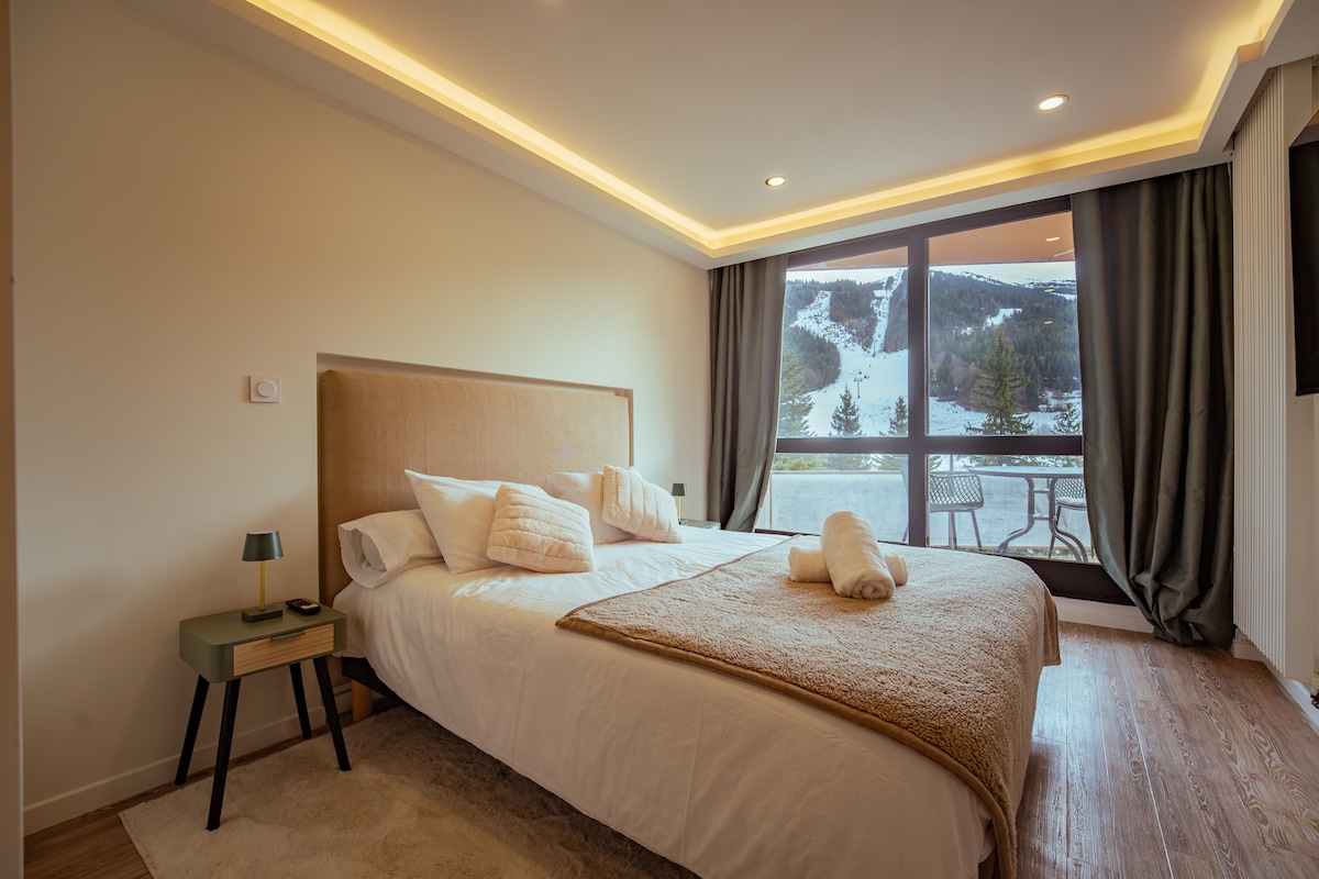 Egyszerűsítsd az életedet ebben a békés, központi térben. A falu központjában található sétálóutcában található a sípályákhoz a lakástól 100 méterre található ingyenes transzferrel juthatsz el. A falu minden kényelmi szolgáltatását gyalog is élvezheted: üzletek, éttermek, mozi, medence, jégpálya, bowlingpálya, kaszinó. A nappali/konyha egy déli fekvésű erkélyre nyílik, a hálószoba pedig egy csendes kertre. Ingyenes parkolás 50 méteren.