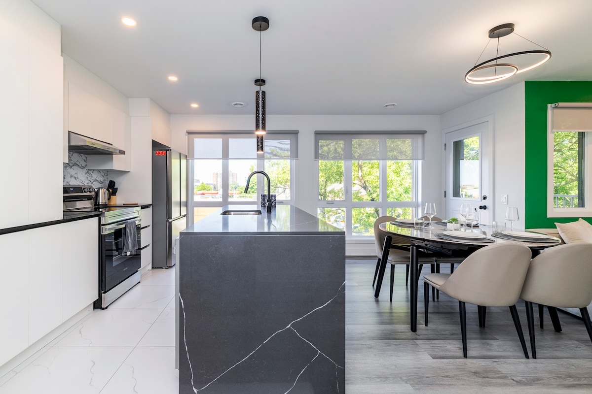 Located in the suburbs of Montreal, this house is perfect to bring the whole family with lots of space in the bedrooms, kitchen, living room, backyard and enough space for 3-4 cars on the driveway. Downtown Montreal is 20 minutes away by car, but there are also lots of grocery stores, pharmacies, restaurants in the quiet neighborhood including a 4 min drive to Parc de la Cité. Included: - Fully equipped kitchen - Washer/Dryer - Soap, shampoo, conditioner, towels - 500 Mbit Internet