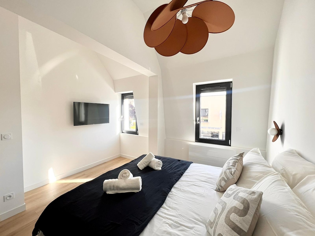 Adoptez la Cocooning attitude En plein coeur de la baie de somme - très belle appartement authentique, chaleureux et design. Draps et serviettes fournis. Supplément 50€ pour 1 animal de compagnie. 🐾🐶 n’oubliez pas de le déclarer. 😜 Ce gite entièrement restauré de 120M2 offre de très beaux volumes, ainsi qu’une vue panoramique sur la baie avec les allées et venues des phoques. Situé au pied des commerces et de la place du marché, vous n’avez plus qu’a poser votre voiture et vous promener.