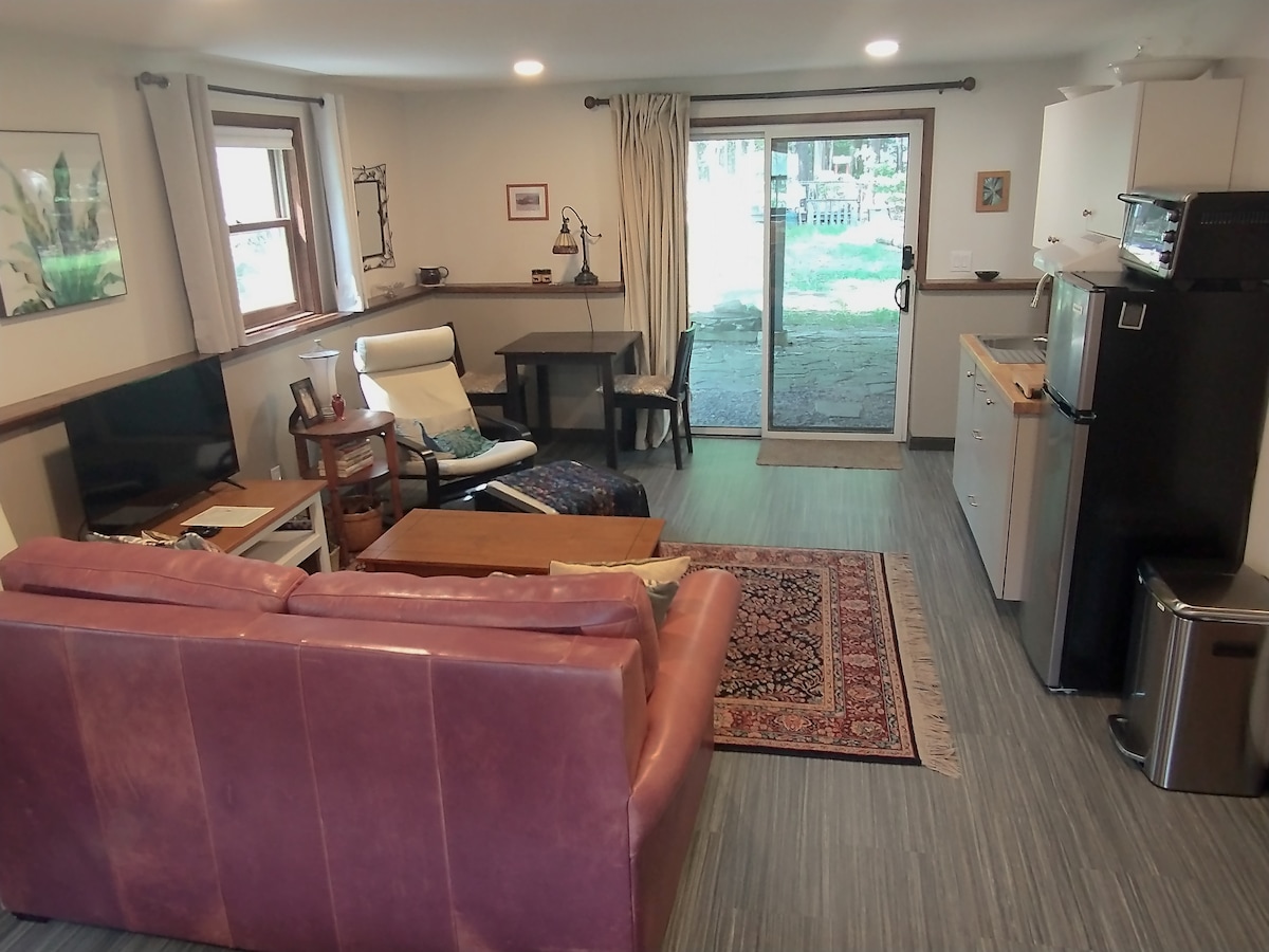 Relax in a cozy studio in the peaceful woods. Tasteful high-quality touches will have you feeling comfortable right away! This is an ideal space for up to 2 adults and up to 2 children. We live upstairs & offer self-check-in. A rare find in the Hudson Valley, our neighborhood is mostly flat, with walkable, quiet roads, and excellent bird-watching. It's an easy bike ride to connect to the vast state-wide rail trail system & all that the Mohonk Preserve has to offer.