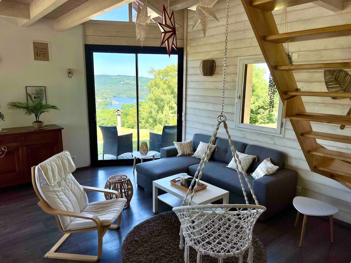 Csodálatos gubózó faház a tavak és a hegyek között, látványos és panorámás kilátással az Aydat-tóra, a Puy-de-Dôme-re és az egész völgyre. A nagy öbölablakok a természet állandó látványát kínálják, amely az évszakokkal együtt változik. A tökéletes hely, ahol feltöltheted az akkumulátoraidat a hegyekben a tó mellett, ahol tavasszal piknikezhetsz, nyáron úszhatsz, ősszel sétálhatsz, és közel van a síközpontokhoz a téli hó örömei miatt.