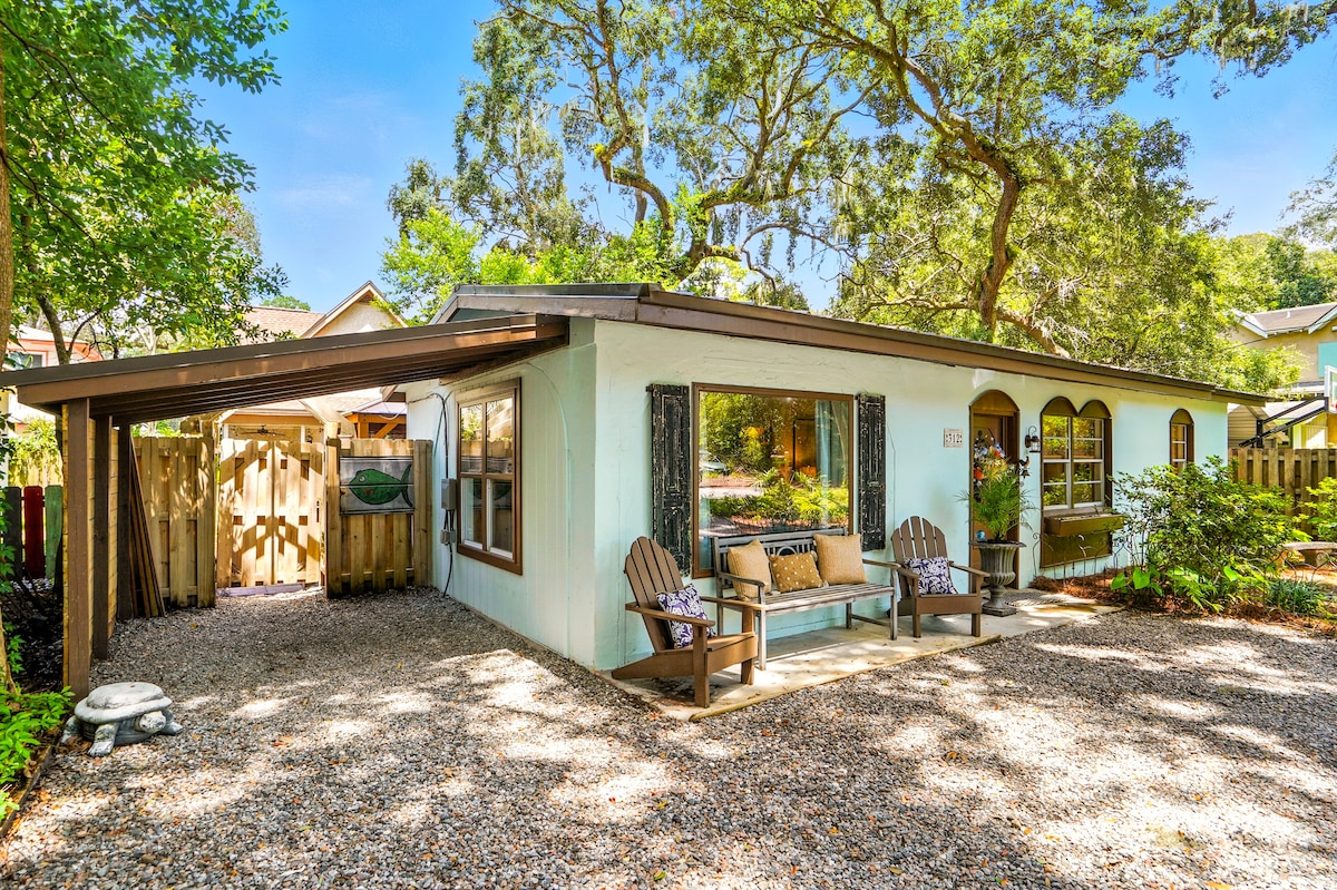 Aranyos és érdekes vendégház St.Simons mólójának/falusi területének szívében, amely helyreállította vintage örökségét. Új légkondicionáló és 65hüvelykes okostévé. Saját kocsifelhajtóval rendelkezik, de nem lesz szükséged autóra - ez a kisház olyan hihetetlen helyen található, hogy könnyedén sétálhatsz mindenfelé! Kis tengerparti kisházunk teljesen el van zárva egy privát kerítéssel, hogy a háziállatod szabadon futhasson. Kültéri étkezővel, grillezővel és szabadtéri zuhanyzóval ellátott verandával is rendelkezik.