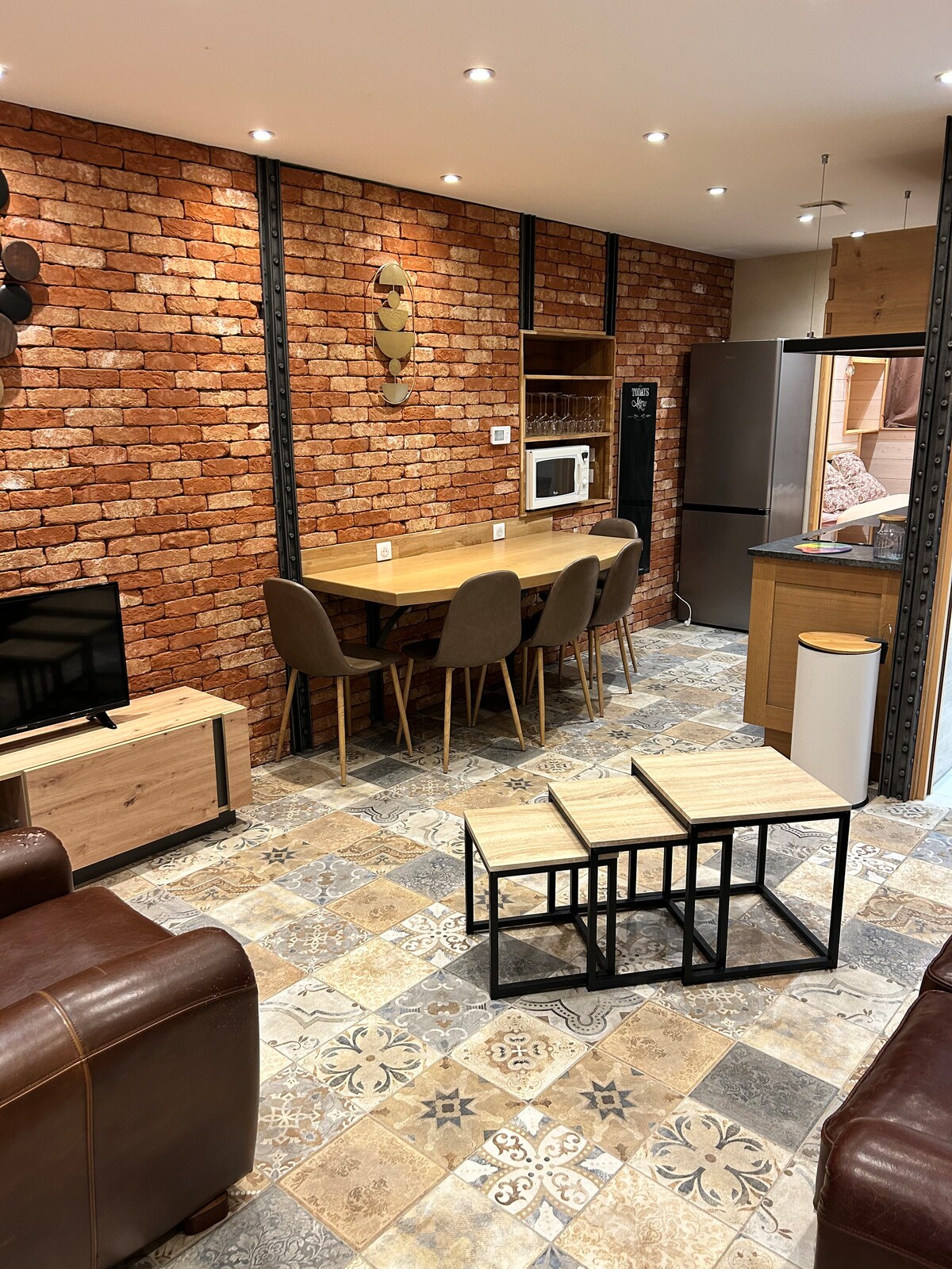 Spacious 40 sqm air-conditioned studio, rated 2-star furnished accommodation, located on the first floor of a family house with private entrance. Ideal for up to 4 guests, business or leisure stays. Fully equipped kitchen, fiber Wi-Fi, workspace, TV area, double bed (140×190cm) + sofa bed, bathroom with shower, separate toilet, covered terrace. Bed linen and towels included. Close to Plaine de l’Ain, Ambérieu, Bugey NPP, UFPI. No pets.