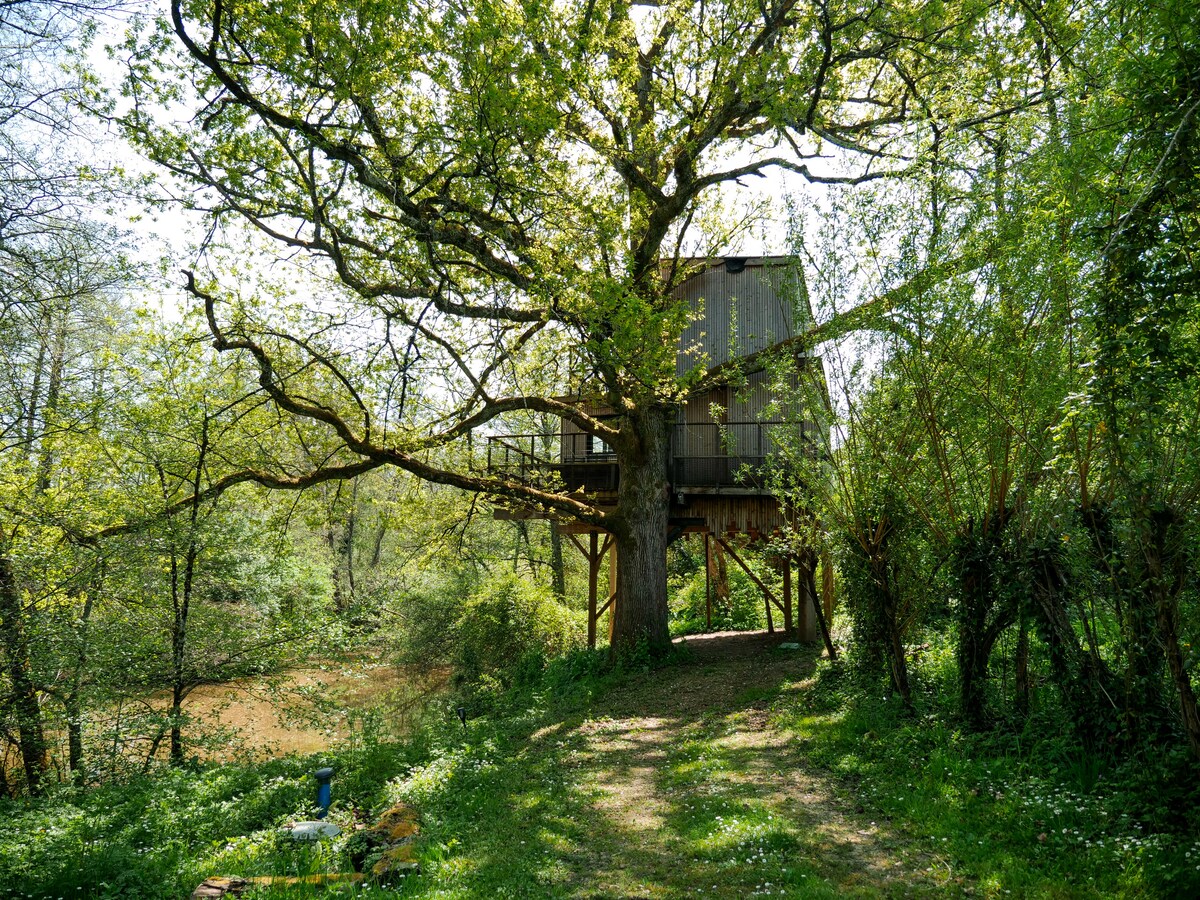 Escape to our unique treehouse, suspended 5 meters high! This 30m² haven with a 20m² terrace offers calming views of our private lake. It's ideal for a romantic and refreshing nature getaway. Enjoy a cozy bedroom, a warm living/dining area, and a fully equipped kitchen (hob, fridge, microwave, kettle, coffee maker). Modern shower room, separate toilet. A suspended swing on the terrace awaits you for pure relaxation.