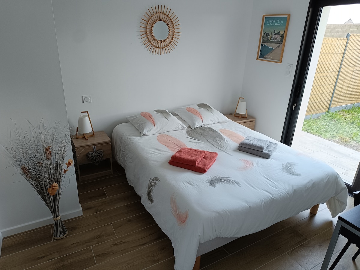 Pontivy és Locmine között, ideális helyen kínálom ezt a házat egy csendes lakóövezetben Naizinban. 4 fő számára tervezték és szerelték fel, nagy, világos és tágas nappalival, nappali és étkező résszel. Felszerelt konyha, 2 hálószoba (1 franciaággyal és öltözővel, a 2. kihúzható ággyal), fürdőszoba káddal és külön WC. A külső területe több mint 1000 m2. Wifi/parkoló/ágynemű/fürdőszobai ágynemű/edények biztosított.