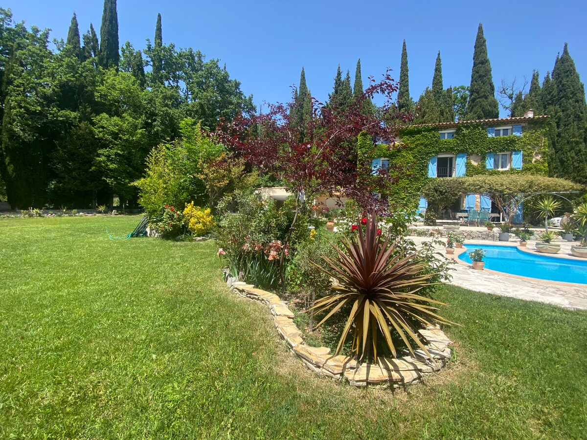 Petit STUDIO très bien équipée avec entrée et parking privé dans une grande Propriété avec piscine et jacuzzi chauffés du 10 avril au 30 octobre . La piscine extérieur et jacuzzi ainsi que le jardin sont partagés mais assez grand pour profiter chacun son espace de tranquillité . Je vis dans la bastide principale . Un Havre de Paix entouré d oliviers centenaires . A 35 minutes de l aéroport de Nice et divers villages provençaux et 14km de Cannes . Tele grand écran /abonnement Netflix