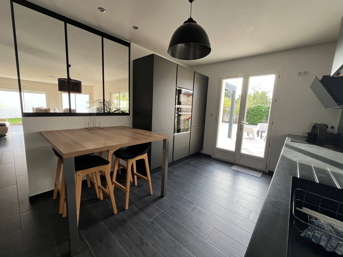 A tengerparttól csak egy rövid sétányira található tágas, 130 m2-es házunk, amely „3⭐️-as, bútorozott turistaszállás” besorolású, Lauzières-ben (egy osztrigafaluban La Rochelle kapujában, az Ile de Ré-híd közelében) található. A szálláshelyen az emeleten 2 légkondicionált hálószoba, a földszinten pedig egy hálószoba, egy zuhanyzós fürdőszoba, egy fürdőszoba, egy nappali (40 m2) és egy nagy, légkondicionált konyha (30 m2) található, ahonnan egy meghitt külső térre nyílik kilátás.