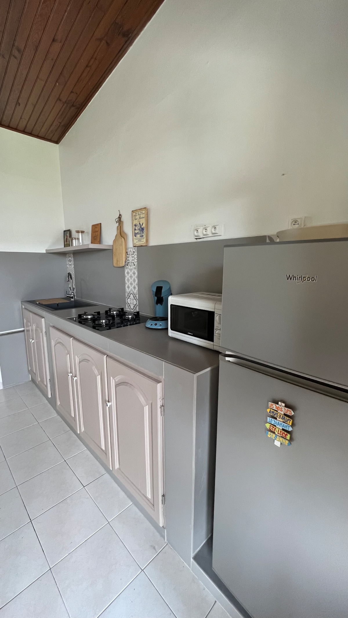 Élvezd a stílusos, központi elhelyezkedésű otthont, amely a következőkből áll: 1 felszerelt konyha (hűtőszekrény, főzőlap, grill/mikrohullámú sütő, kávéfőző, Dolce Gusto kávégép) - 1 nappali tévével, 1 kanapé, – Két légkondicionált hálószoba franciaággyal, - 1 babaágy, – 1 zuhanyzószoba zuhanyzóval, WC-vel, – 1 terasz kilátással a kertre, – 1 mosógép, ruhaszárító állvány, - 1 vasalódeszka és vasaló. - Kültéri parkolás, – 1 kültéri zuhanyzó, – Akadálymentesített az M R-ben élők számára