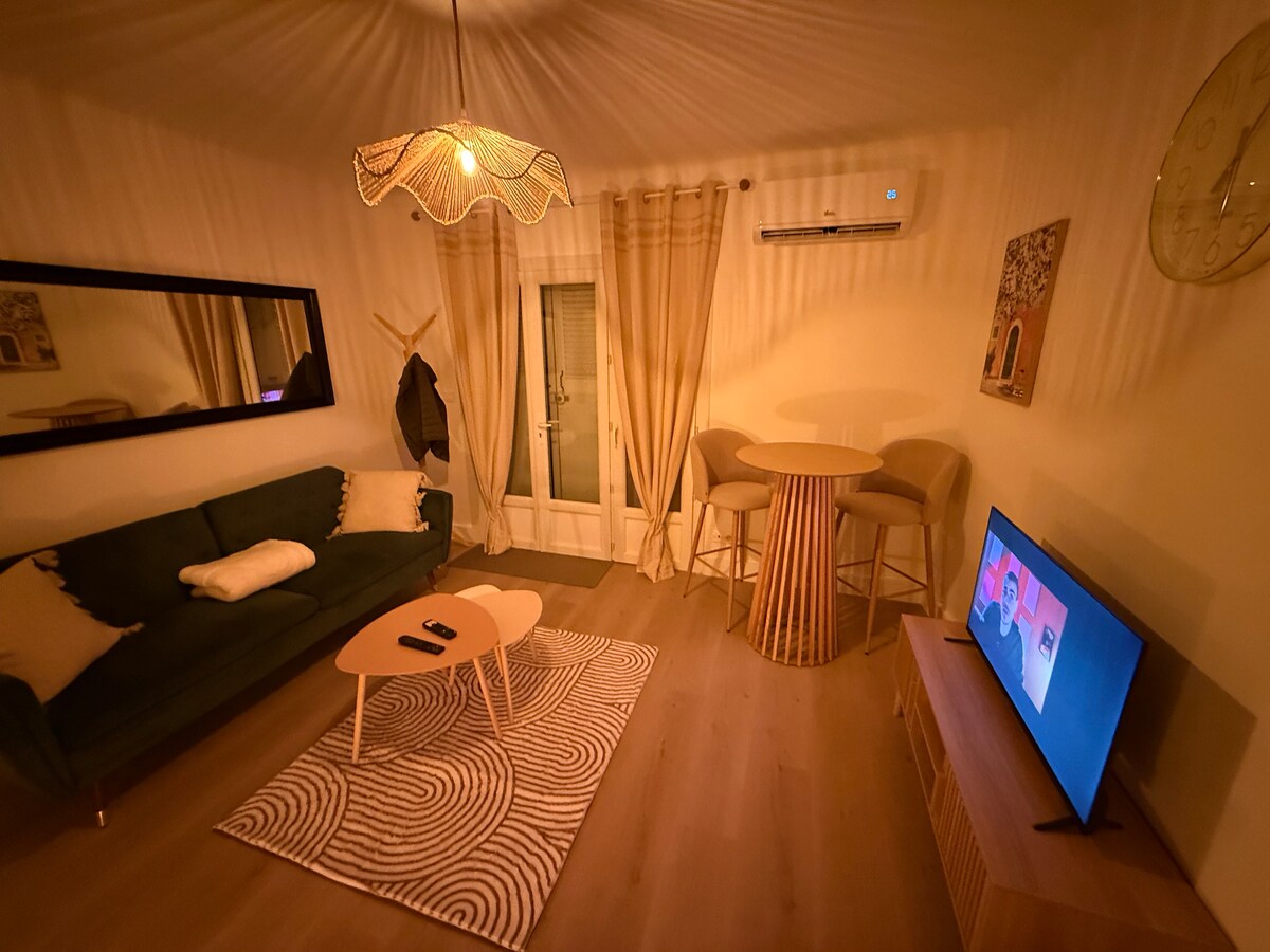 Éjszakai sarok franciaággyal. Nappali 140 cm-es kanapéval. Fürdőszoba zuhanyzóval, mosógéppel. Teakonyha. Climatisé. Minden ágynemű biztosított. Esernyőágy kölcsön, babakád és szék kérésre ingyenesen. Lehetőség van 2 további személy elszállásolására kérésre. Gyermekek után fizetendő díj felszámítása. A fesztiváltól és a tengerparti palotától 700 méterre található. 500 méterre a cannes-i vasútállomástól és 300 m-re a Forville piactól és a Suquet privát parkolótól