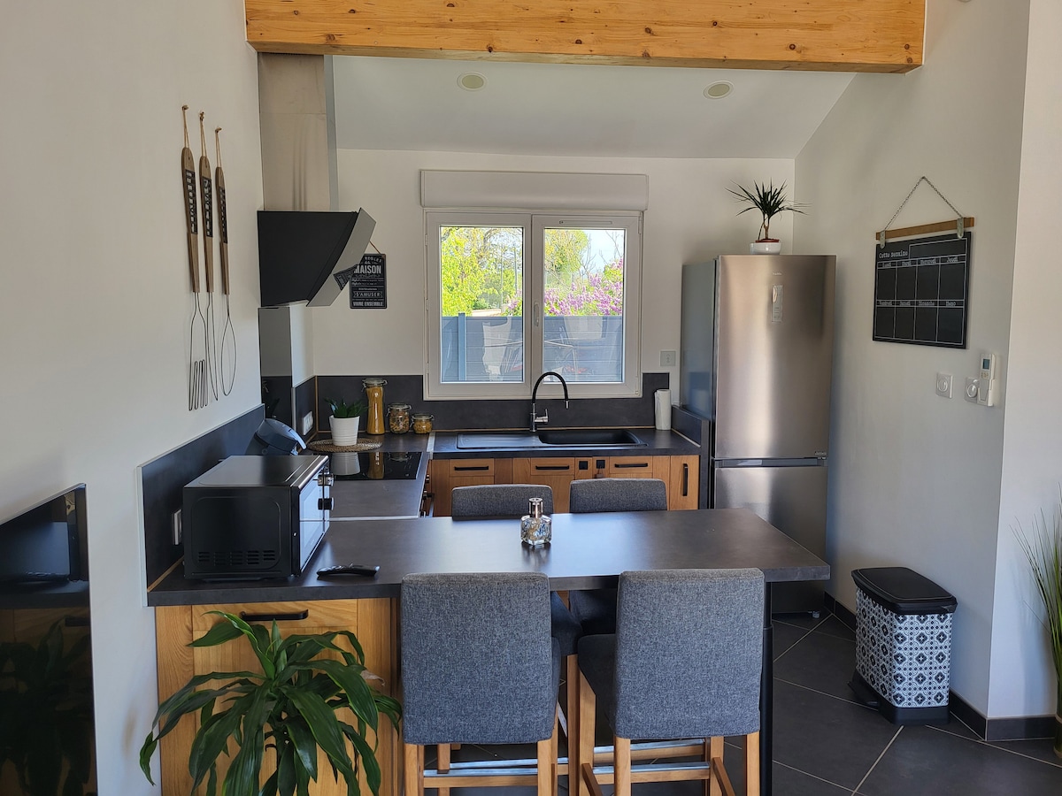 Spa privatif 6 places Logement 100m2 comprenant une cuisine équipée, salon avec canapé d'angle convertible, salle à manger, trois chambres dont une avec salle de bain privative, salle de bain supplémentaire avec douche et baignoire, toilette séparé. Jardin avec terrasse clos, table extérieure et plancha gaz. Carte d'accès au lac disponible dans le logement Possibilité de garer trois véhicules sur place. Ménage, draps et serviettes compris dans la location